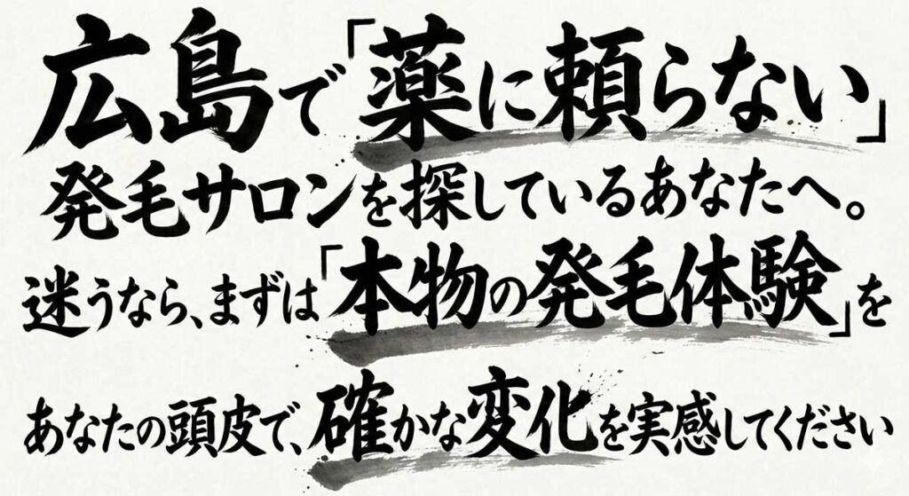 - 私たちの「フラッグシップ(誇り)」 当サロンが「薬に頼らない」ことにこだわるのは、お客様の10年、20年先の健康を守り抜きたいからです。一時的な毛量の増加と引き換えに、大切な身体のバランスを損なってほしくない。それが、元記者の目線で数々の事実を見てきた店長の「信念」です。